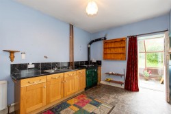 The kitchen offers a range of base and drawer units with complementary worktops and tiled splashbacks. There is an oil fired Rayburn range cooker which also doubles as the boiler for central heating and hot water. A stainless steel sink and drainer with a chrome mixer tap is positioned within the countertop. A window to the rear, with window seat provides a source of natural light and overlooks the rear garden. Ceiling lighting and practical vinyl tile flooring completes the kitchen, with doors leading to the rear hallway and conservatory.